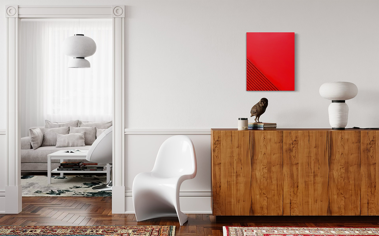 Vermilion Unicorner Plissé continues this series with a new intensity. Inspired by the folds of pleated fabric, the relief carries both rhythm and stillness, amplified by its bold, vermilion surface.